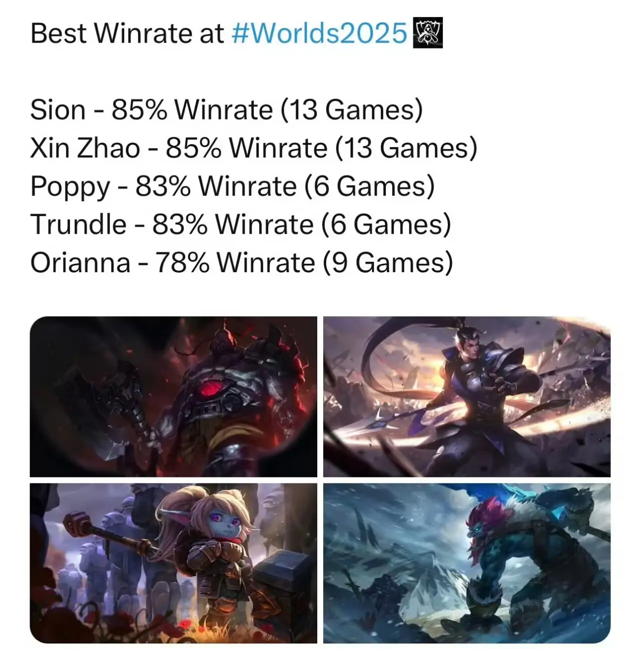 S15世界赛英雄胜率榜单出炉!TES有望打赢GEN,红米透露输KT内幕